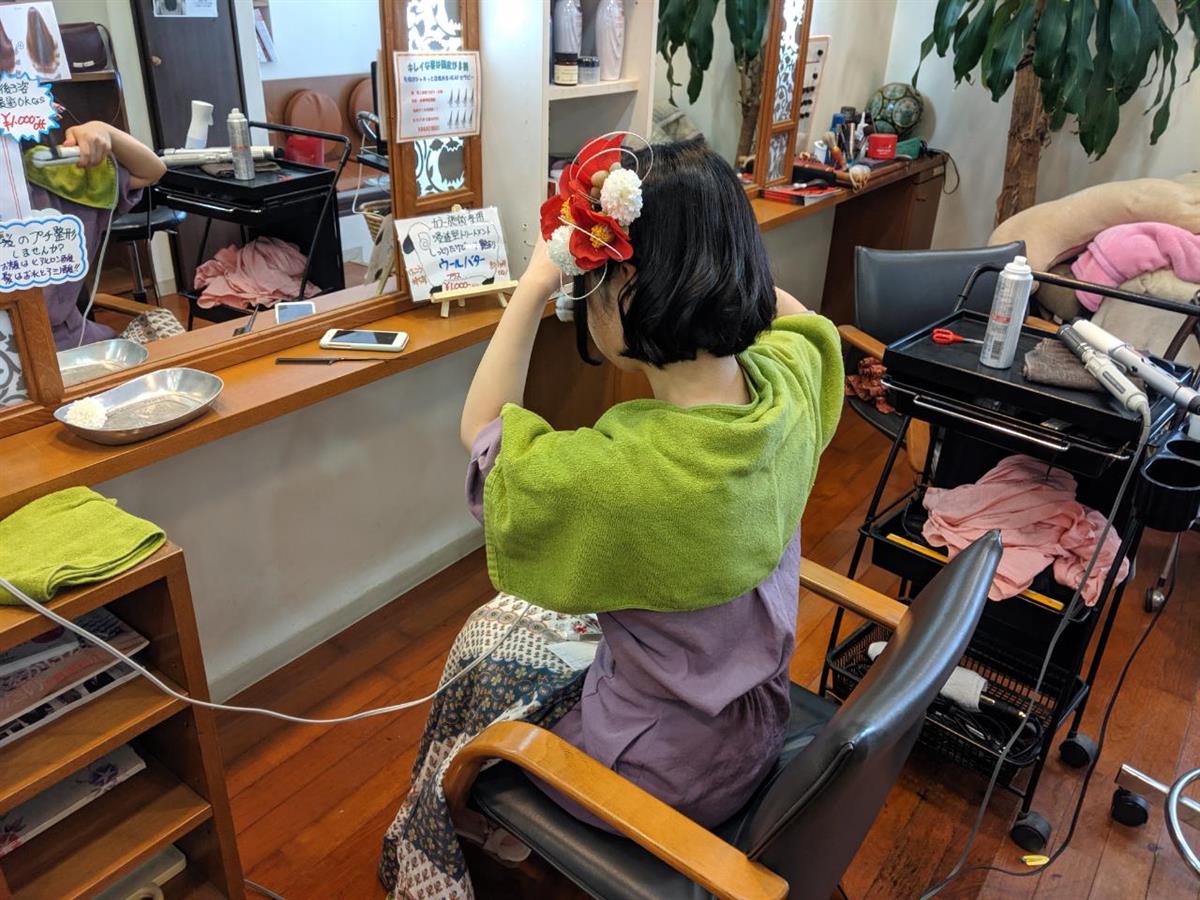 先日、次女の成人式前撮りをして来ました。長女の時は、前撮りは着物を購入した所で頭も着付けもお願いしました。小さい頃から家でしかやったことがないので、他の人にやってもらう良い機会だと思いそうしました。本番は当サロンで行いました。しかし、次女はとにかくこだわりが強く特に前髪は、妻にも私にもカットさせて貰えないです。では、誰が・・・そうです!自分でカットしています。つまり成人式の前撮りでも前髪セットはセルフで行っているところです。前撮り撮影は無事終了致しました。