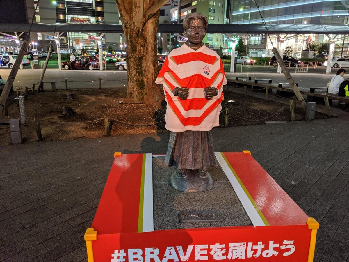 仕事が終わってから約一時間位ウォーキングを続けています。以前にも書きましたが、お堀(駿府公園)を回るとか寂しい所を歩くのが苦手なので、街中をからめながらウォーキングをしています。尚、お客様から教えて頂いたのですが、階段をコースに入れ登りは一段ぬかしにすると運動量が上がるという事で地下道や歩道橋も入れて歩いています。エキパ駐車場側からアスティに上がる階段が一番長いので、ウォーキングコースに頻繫に入れています。歩いている時は、ここに新しい店が出来たなどキョロキョロしながら情報収集していますが、駅前の竹千代像にラグビー日本代表ユニホームがきせて応援状態になっているのを昨日知りました。多分大分前よりしてあったと思いますが、全く気付きませんでした。かなり派手なのに・・・転ばないくらいに情報収集して面白い話題があればまた、紹介していきます。