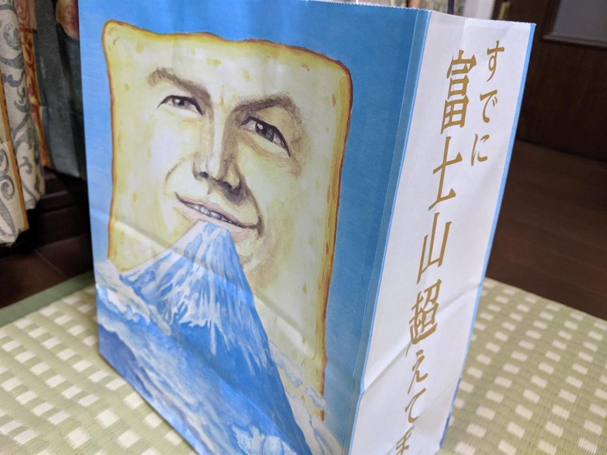 最近、近くにすでに富士山は超えています。と書かれた看板と水色に塗られた店舗が出来て何屋さんになるのだろうと思っていたらなんと今度は、怪しげな男性の顔が描かれてました。何せ妙な感じなのでとにかく気にしていましたら先日、いよいよオープンしました。何屋かと言うと食パン専門店でした。おまけに初日は、長蛇の列ができていました。家族で、変わっているだとか気持ち悪いだとか言っていましたので、行列が収まったころに買いに行きました。とてもまちまちして美味しかったです。インドカレーで有名な丸子のお店の特大ナンに少し似ていて、伝馬町の有名食パン専門店とは、また、違った味ですので興味があれば試してみて下さい。きっと話題にはなると思います。
