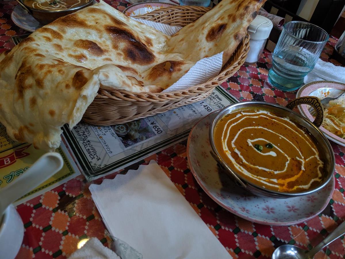話のきっかけは忘れてしまいましたが、日本のインドカレーのお店はインド人はほぼいないらしくネパールの人がやっているんだと知ったかぶりして話していたら、今日のお昼はインドカレーにしようとなり以前から混んでいる丸子のカレー屋さんに始めて行く事になりました。料理が出てくると器からはみ出るナンに驚きました。しかし、私はライスを頼んでいたのでナンにしとけば良かったと思っているとこちれもかなりのボリュームでびっくりでした。味も美味しく話題性もあり満足出来ました。しかし、少食の方は、ナンはハーフサイズをお勧めします。