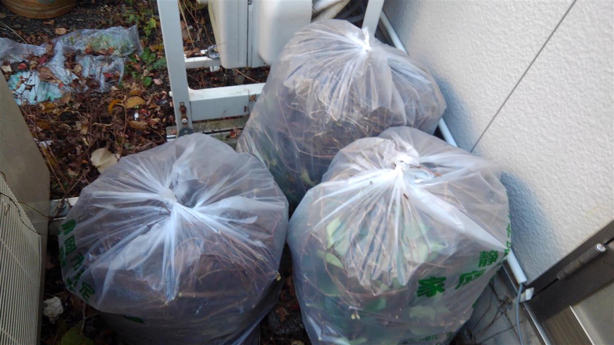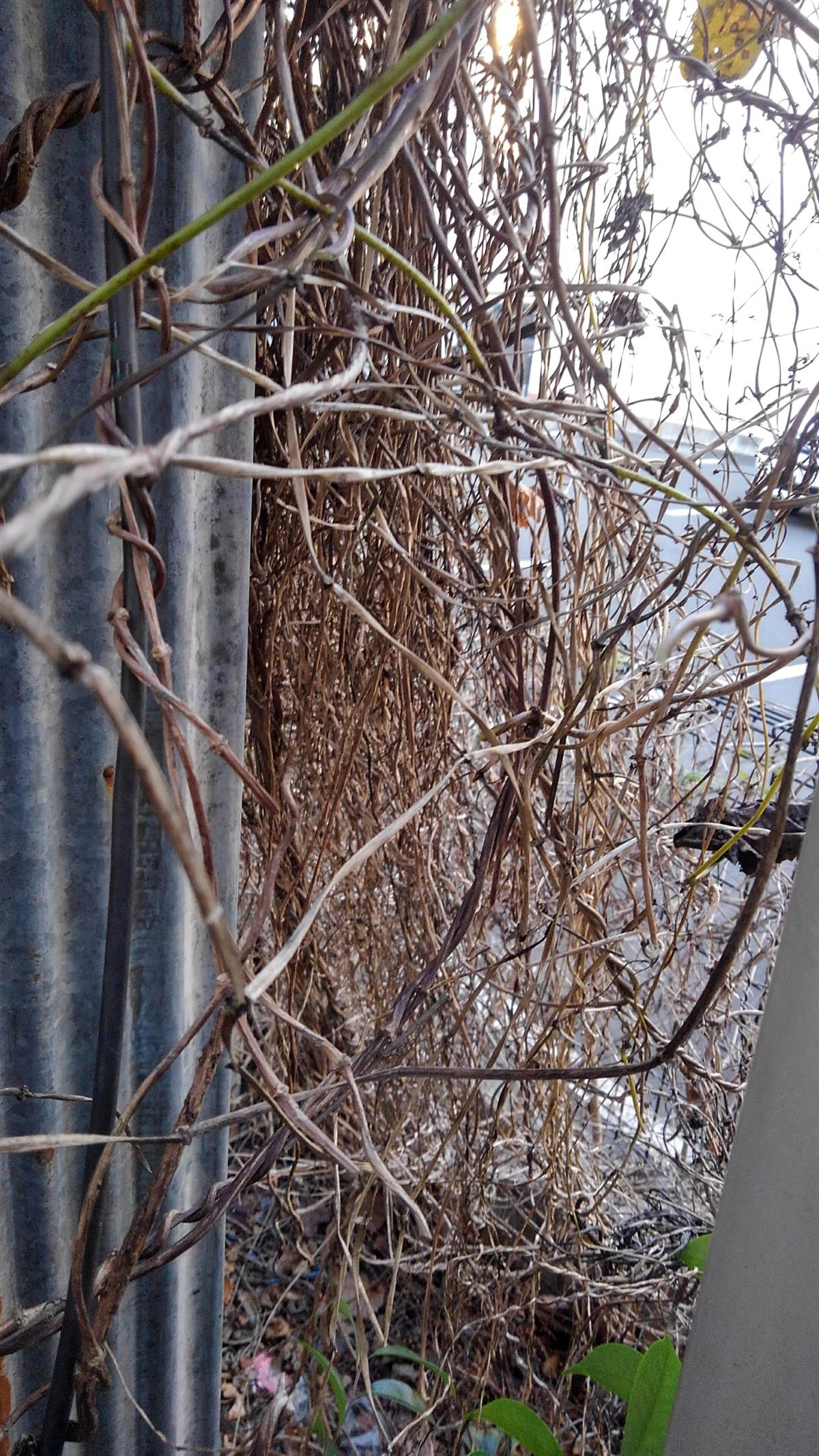 わが家は、ここ何年も蔦に悩まされています。夏になると屋根や壁に増殖して見る見るうちに蔦の絡まる家になってしまいます。その時は、蜂や虫が出るのと勢いが良くなかなか取れないので、いつも完全に葉が枯れてから行っています。普通は男が屋根に登りますが、家は妻が登り、私が片付けるのが、パターンになっています。今年は、ゴミ袋5袋になりました。今年は、根絶を目指して情報収集して、なんとこの蔦は、クズという名称でした。何となく納得の名前です。本題の根絶方法は、根元に除草剤を注入するのが最適とわかり探すのですが、隣の家の方から来ている物や人が入れない所にあるようで大元が見つからづ断念です。でも、昨年よりは、減ってきているので来年は少なくなっているのを期待します。