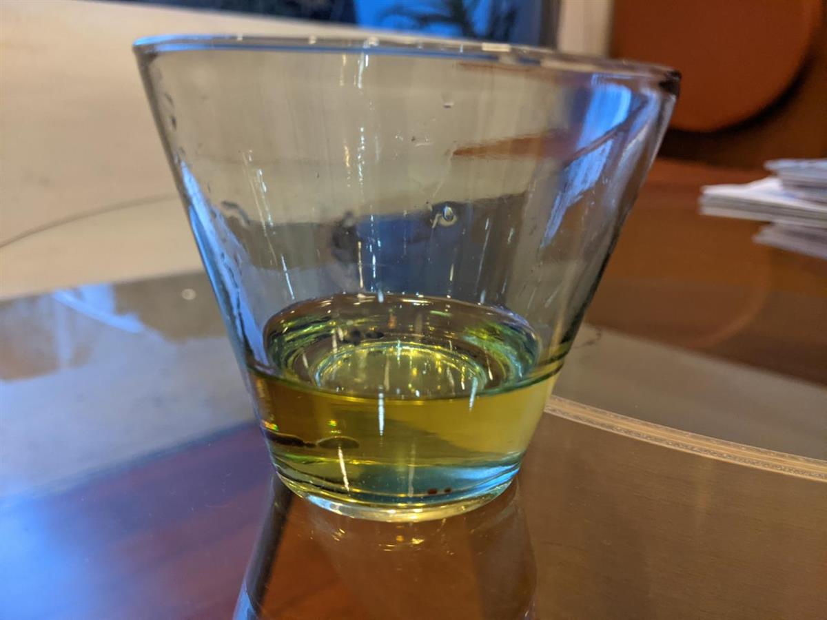 収穫した実は200gない位でしたが、ビニール袋に入れ揉み込むこと30分以上なんとなく水油に分離するまで続けたあとグラスに入れて一晩置き上澄みが透明になった所をコーヒーフィルターでこします。かなり時間は掛りましたがオリーブオイルが20㏄位取れました。時間が掛かった分かなり嬉しかったです。味はと言うと期待していたより可もなく不可もない感じのオリーブオイルでしたが、気分的には美味しく感じました。隣のパン屋さんでフランスパンを買い家族で頂き、残りは料理に使いあっという間に使い切りました。なかなか面白い体験でした。来年は、完熟する前に食べる事が出来ればと考えています。今年の夏は葡萄が収穫さるのを楽しみにしています。
