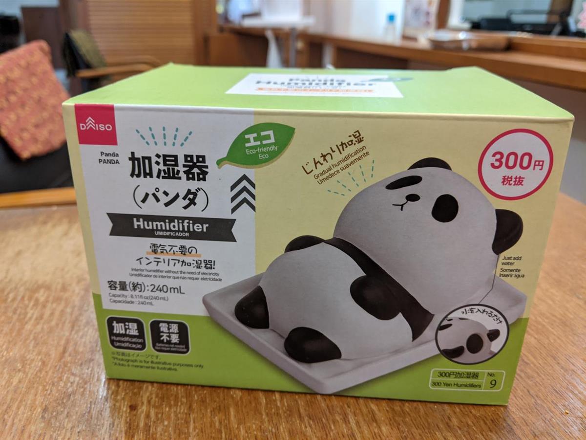 やはり、コロナの影響でPROSHでは、夏場も継続して加湿器を付けていました。弱酸性次亜塩素酸水を店内に噴霧するためです。(健康を害さないタイプの商品)実際に加湿器の季節が近づいて来ると加湿器の情報が多くなって来ます。SNSなどで、話題になっているダイソー商品の加湿器が売り切れ続出と聞き、欲しくなりダイソーに行ってみるとやはり売り切れでしたが、店舗ごとに取り扱いが違うのを知っていましたので、他の店舗に行き何とか手に入れました。加湿器と言っても陶器の様な素材に水を入れるだけの簡単な物で効果のほどはまだ、わかりませんがデザインが可愛いので受けているのではないかと思います。乾燥してきたら効果を検証してみます。写真を見て欲しいと思ったら今すぐにダイソーに行ってください。
