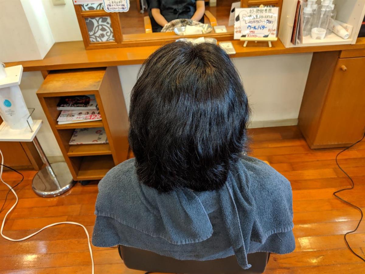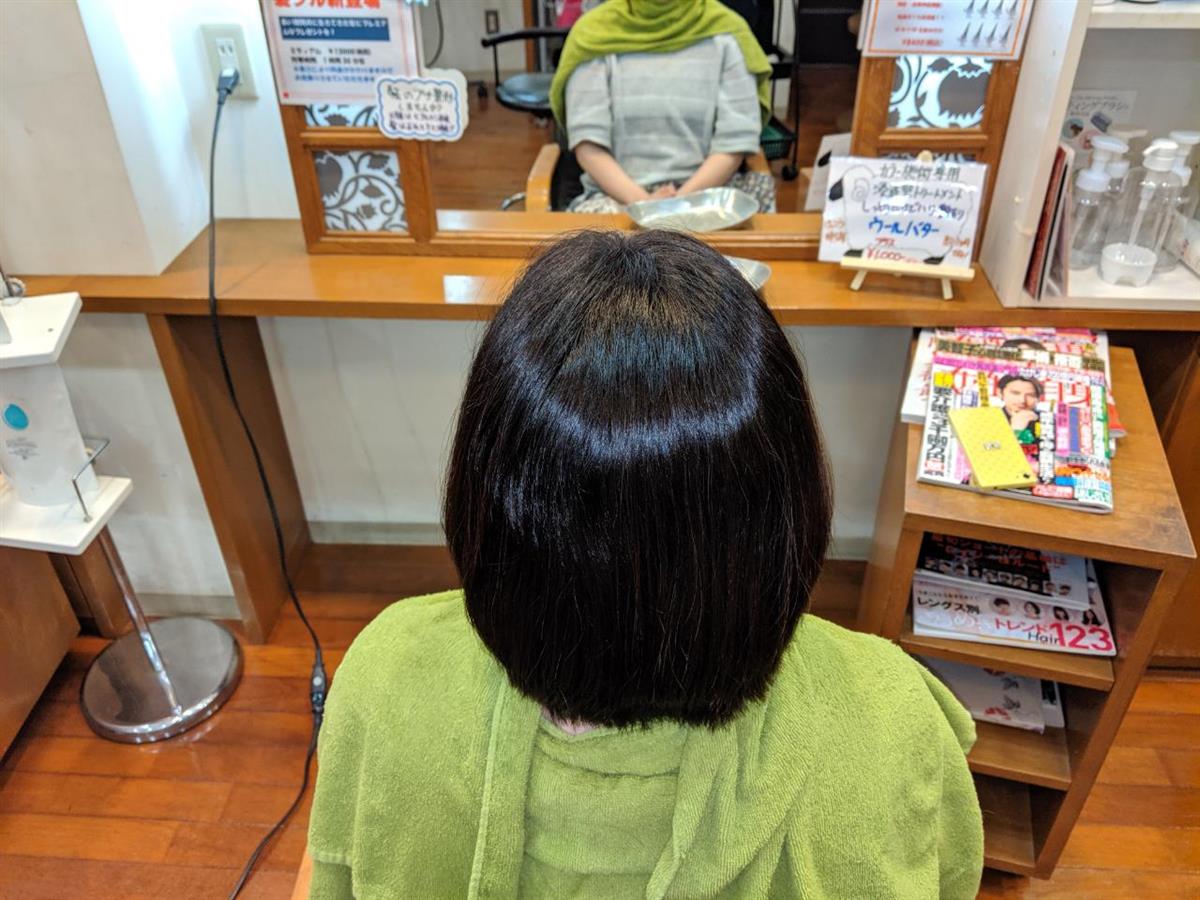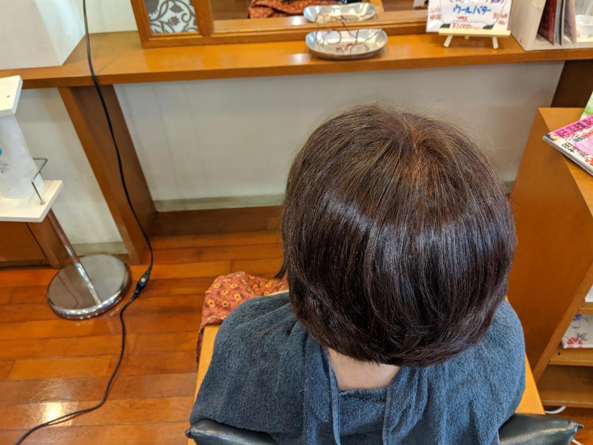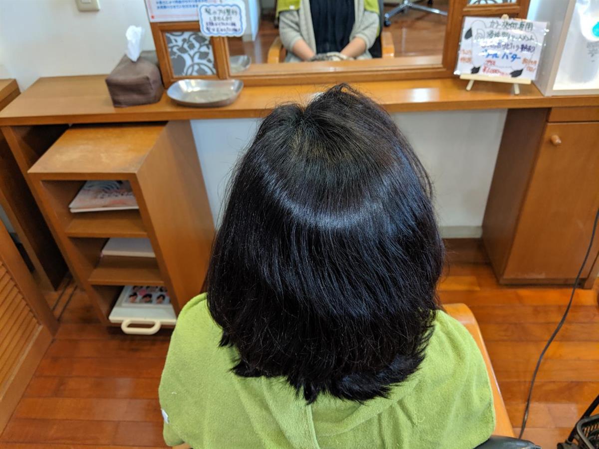 先天的癖毛でうねる感じに出る髪質です。髪フル施術は今回で2回目になります。縮毛施術との併用は、初めてとなりますが癖もしっかりと伸びているし、艶感もありダメージも残さなかったです。その後ヘアーカラー(ウールバターしました)を施術しましたが、ダメージが出ることもなく仕上りました。