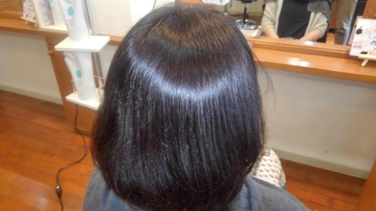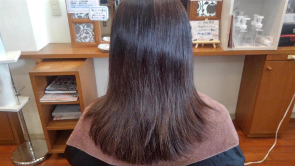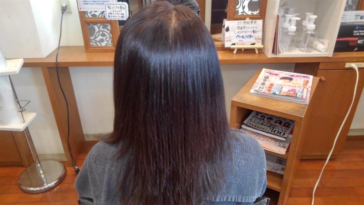 髪の太さもあり二か月強でカラーのみの施術履歴です。施術前もそんなに艶のない髪質でありませんが、加齢でも髪内部は若いころと違うとも説明で今回髪フルをやって頂きました。艶感はともかく手触り感が全然ちがうとのコメントをもらいました。