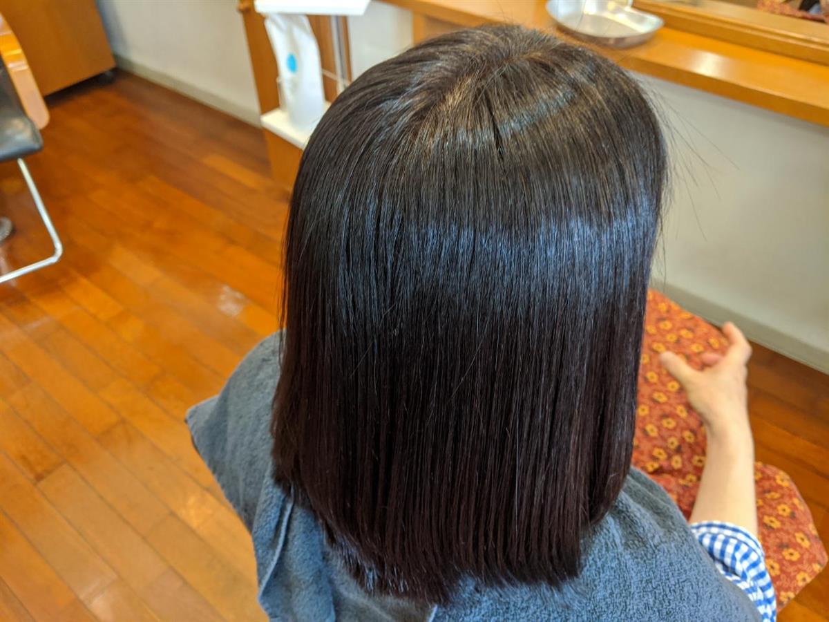 このお二人は、縮毛矯正の施術をしてから数か月経って、カラー施術と髪フル施術を行いました。以前より書いていますが、髪フル施術は俗に言う癖毛はとれませんが、ボリュームを抑える効果はあります。(強い癖毛や髪が乾くと凄くボリュームが出る方は、縮毛矯正との併用が必要です。)今年は、髪フル施術と当サロンのオリジナル化粧水フィンフで頭皮ケアーを併用したメニューいたわりカラーを作りました。髪フル施術がお時間がかかるので頭皮ケアーを併用をしないようにしてきましたが、やはり同時もしくは日にちを変えても行った方が良い結果が出ていますので、お客様のご予算や時間に合わせてお勧めしたいと思います。一度お試し下さい。