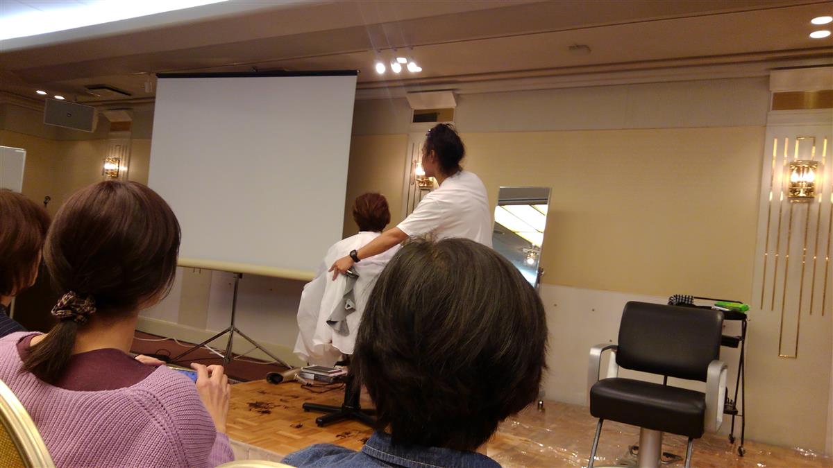 以前、明るく白髪を染めるには、今の技術では、なかなか難しいく限界があるとお伝えしました。しかし、お客様のニーズは、その限界よりも明るいカラーを望んでいる事から、各社新商品の開発をしたいる状況です。その先駆けとして講習会が開かれました。美容師さんの期待も大きく主催者側が急きょ会場を大きい部屋に変更する位の盛況ぶりでした。私の個人的な感想ですが、期待が大きすぎたのか思ったより仕上がり感は明るくなく少し残念でした。しかし、艶感はとても良かったので取り寄せて実験して見ようと思います。結果は、また、報告します。