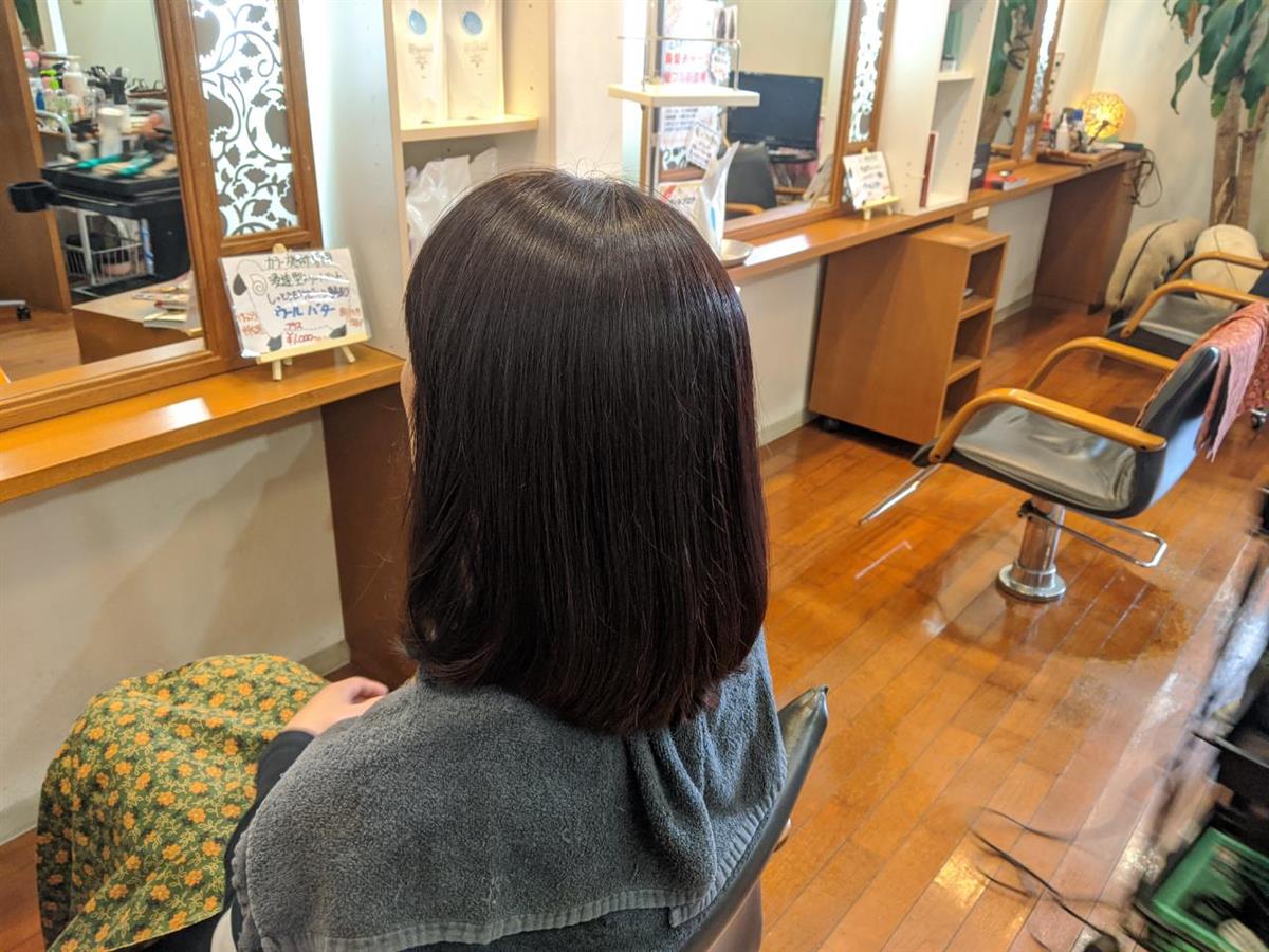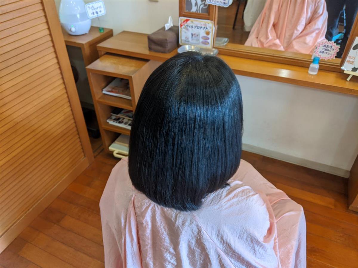 髪フル施術の特徴の一つに髪の艶が挙げられます。ウェーブスタイルやショートスタイルでも艶感はわかりますが、やはり面のスタイルであるボブベースは艶感がわかりやすいですね!写真共にアイロン仕上げはしていなくほぼかわかす程度ですが艶は出ていると思います。勿論、艶だけでなくハリ・コシ・手触りと効果は感じられるとおもいますので一度やって見てください。