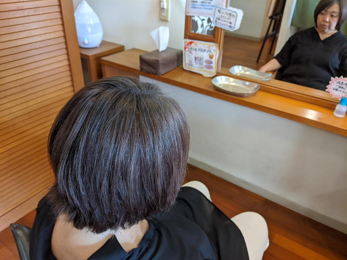 今の季節だからだとは思いますが、あまりハイトーン(明るい)ではないがアッシュ系がはっきり出たカラーがネットなどに紹介されているのでオーダーがあります。しかし、一度のカラー施術ではなかなか色が出ません。(アンダーカラーと言ってなんども明るいカラー施術をしているとその色が抜けたときの髪の明るさの事)ネットなどでは、一度の施術でと紹介しています。このアンダーカラーの条件が合えば一度で入る場合もありますが、PROSHでは髪のダメージの事を考えてアンダーカラーをあまり明るくしないためダブルカラーをしないとこのアッシュ系の色は出ないので、髪フル施術と併用してブリーチした後に色を入れました。通常は、ダメージがある為お客様には進んでお勧めはしていませんが、髪フルでしっかりフォローすれば状態は悪くはありません。