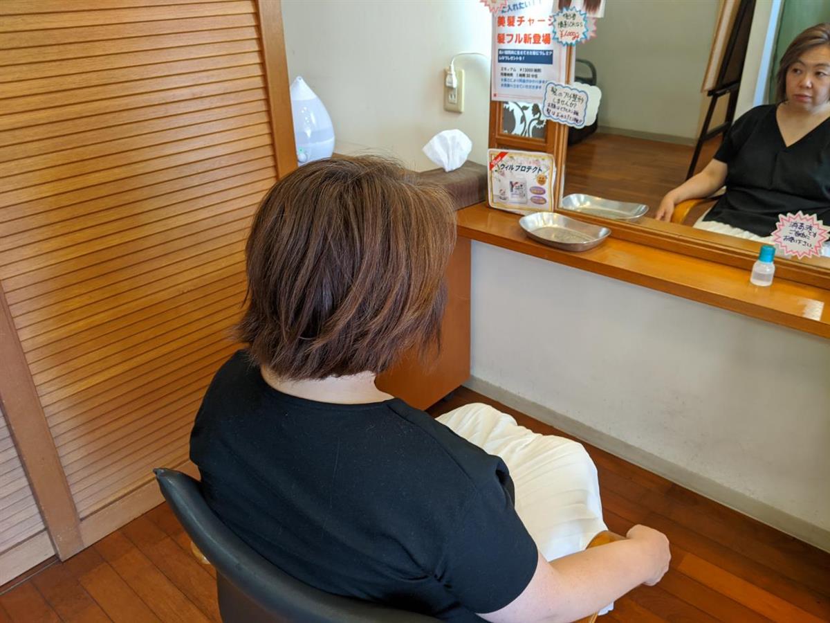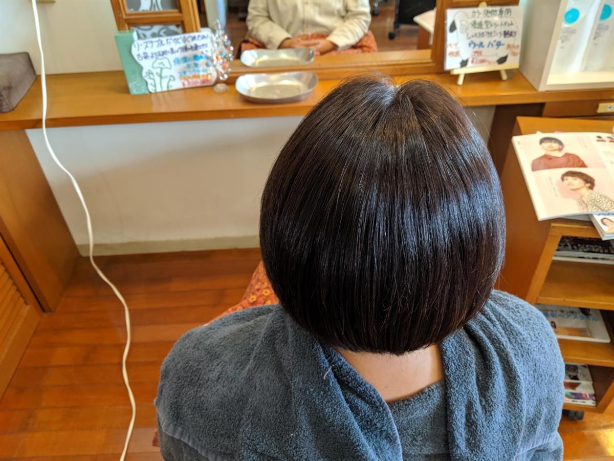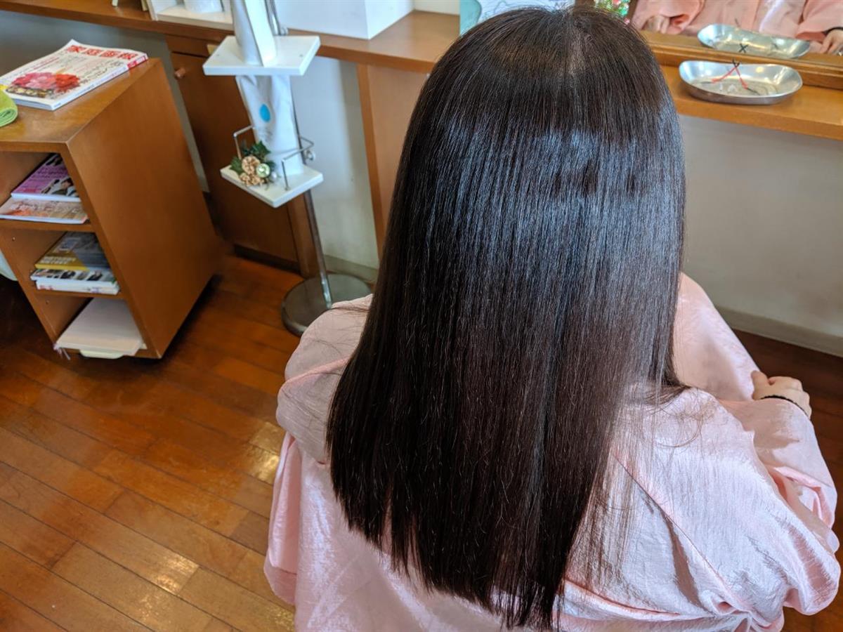 髪フル施術は、先天的癖毛には効果が無くクセは伸びません。後天的癖毛つまり加齢やダメージなどで起こるものには効果を発揮します。写真は、アイロン処理する前の状態です。一見うねりと見えても施術後癖毛部分がはっきり見えてきます。先天的癖毛も伸ばしたい時には縮毛もしくはうねり取り施術の併用をお勧め致します。