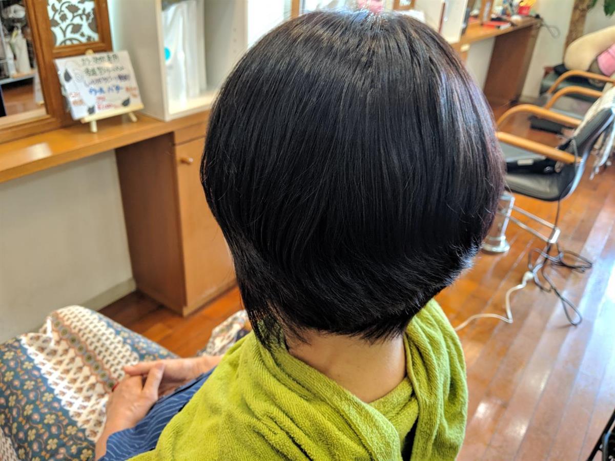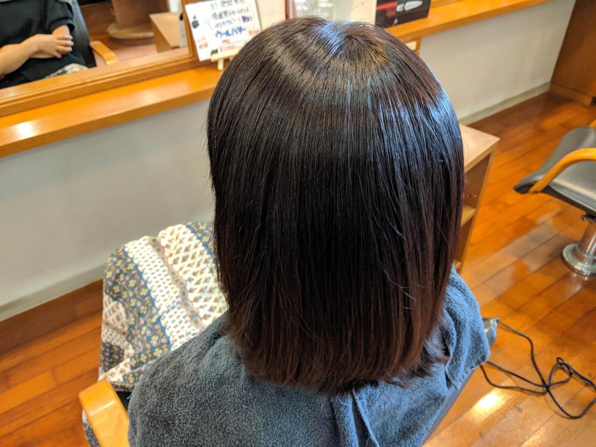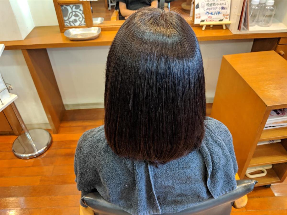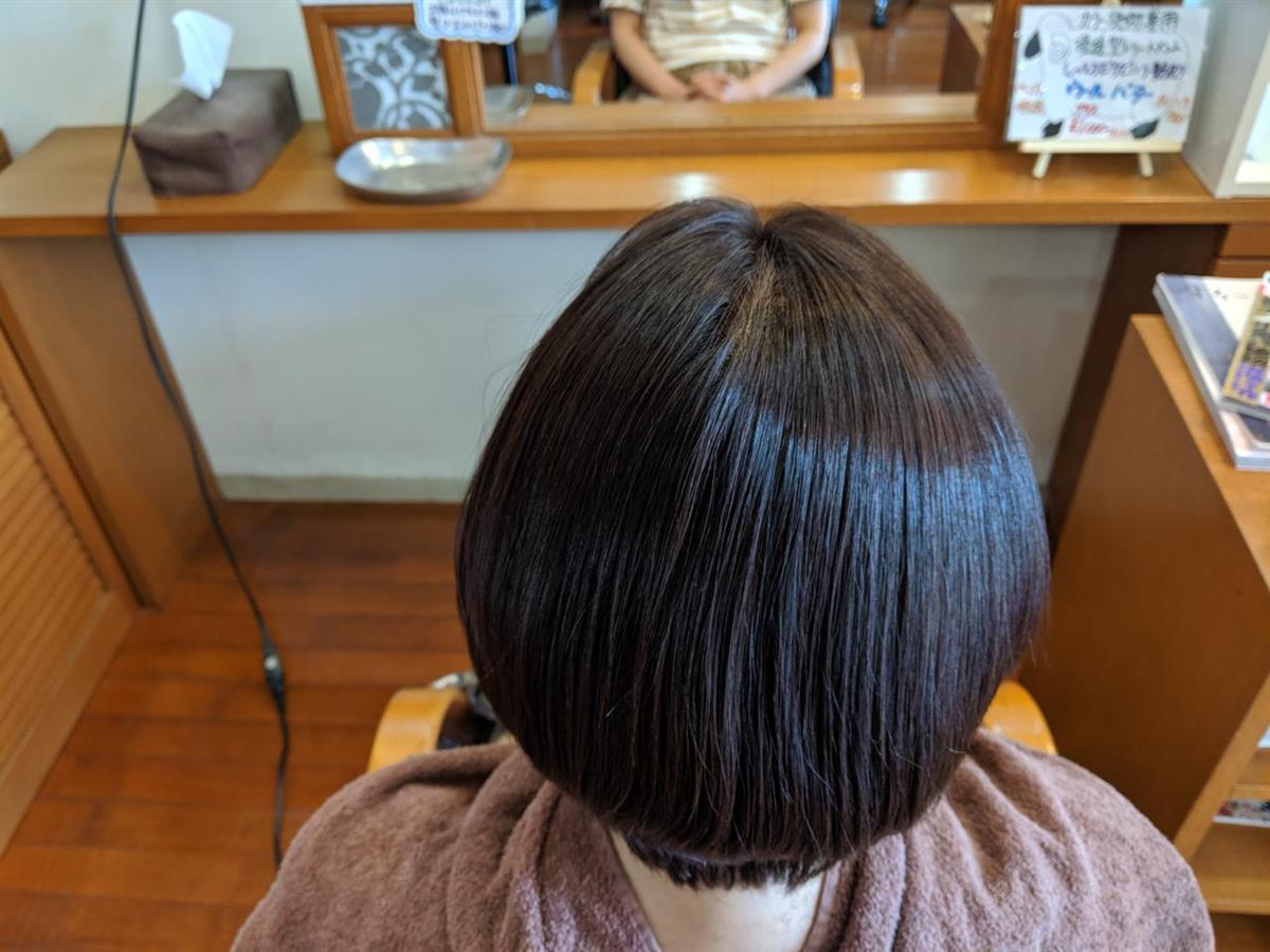 昔は、ボディーパーマなどと言いウェーブを出さずボリューム感だけ出すパーマ施術を髪フルと同時に行いました。トップのボリュームを出したいところだけ掛けてあります。ボブスタイルの為元々ボリュームの出せるものではありませんが、いつもよりはスタイルシルエット良くなっていると思います。